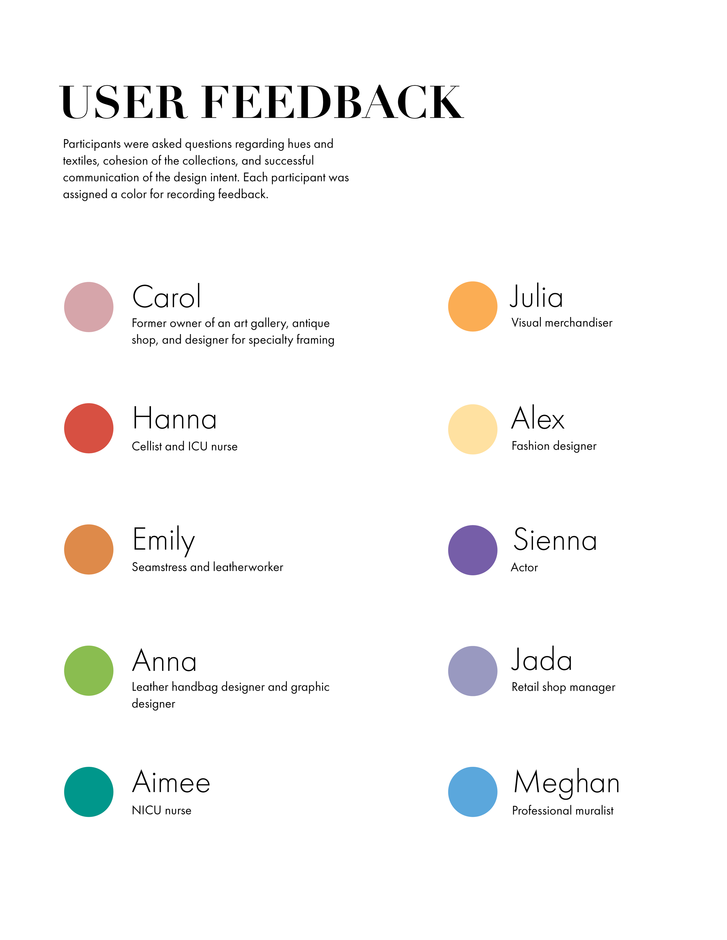 Garments with the most votes were consolidated into a new collection. The feedback on hues and textiles was unanimously the same for each leading garment.