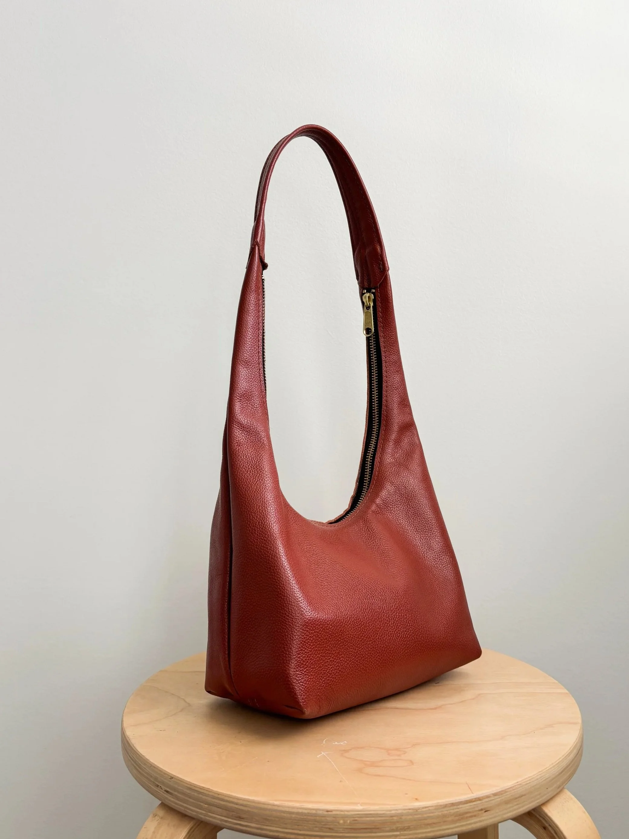 Originally developed from a brief by Glad & Young Studio, The Curved Shoulder Bag expands the product line as a mid-sized, everyday zippered silhouette, perfect for the creative on-the-go customer.